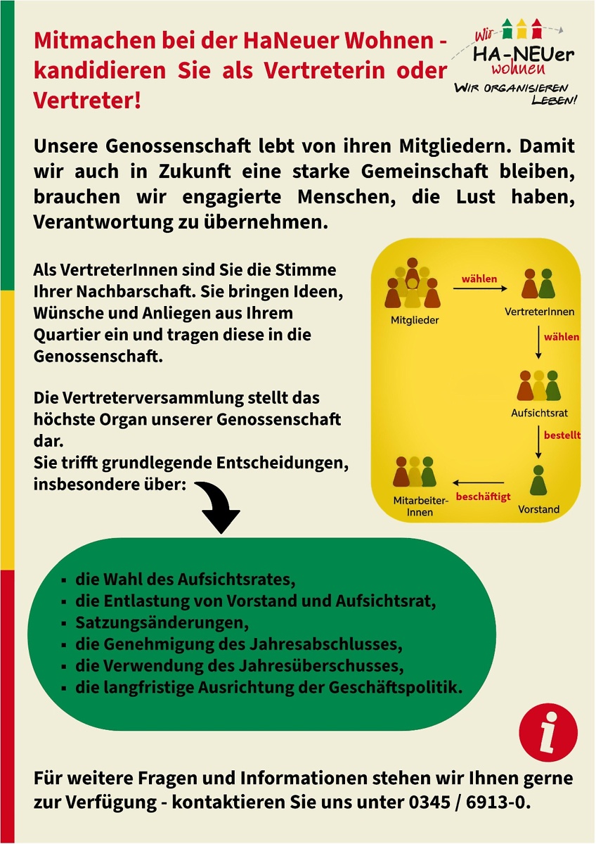 Hier finden Sie regelmäßig aktuelle News und wichtige Informationen für Mitglieder, wie Infos zu Mitgliederwahlen der HaNeuer Wohnen.