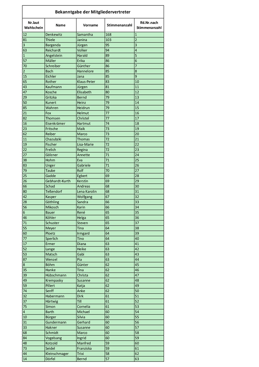 Bekanntgabe der Mitgliedervertreter