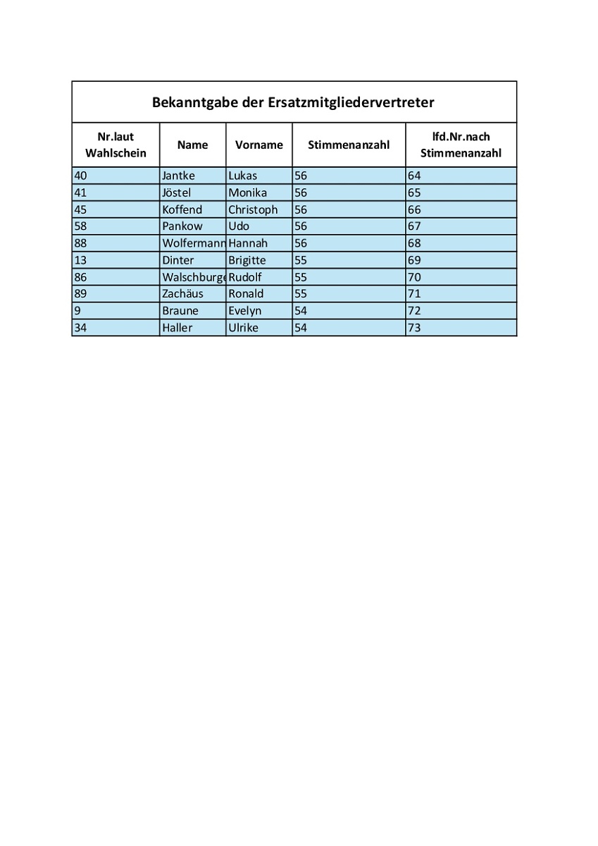 Bekanntgabe der Ersatzmitgliedervertreter