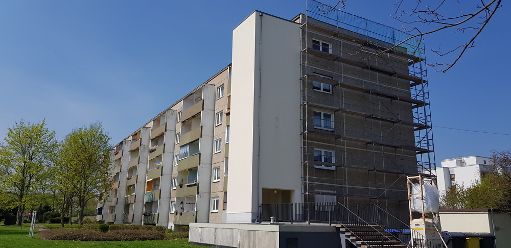 Hier wurden drei Giebel gedämmt, die Fugen verdichtet und Balkonabtrennungen erneuert.