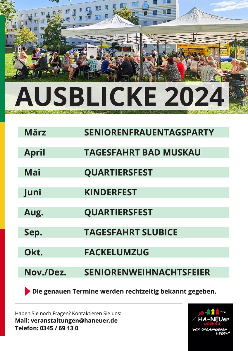 Vom HFC-Kinderfest bis hin zu unserem eigenen Kinderfest waren wir außerdem beim Neustadt-Fest vertreten. Des Weiteren fand im September 2023 unser erstes Quartiersfest im Innenhof Göttinger Bogen statt, im Oktober hatten wir unseren alljährlichen Fackelumzug. Schlusspunkt im Jahr 2023 war die Seniorenweihnachtsfeier.
