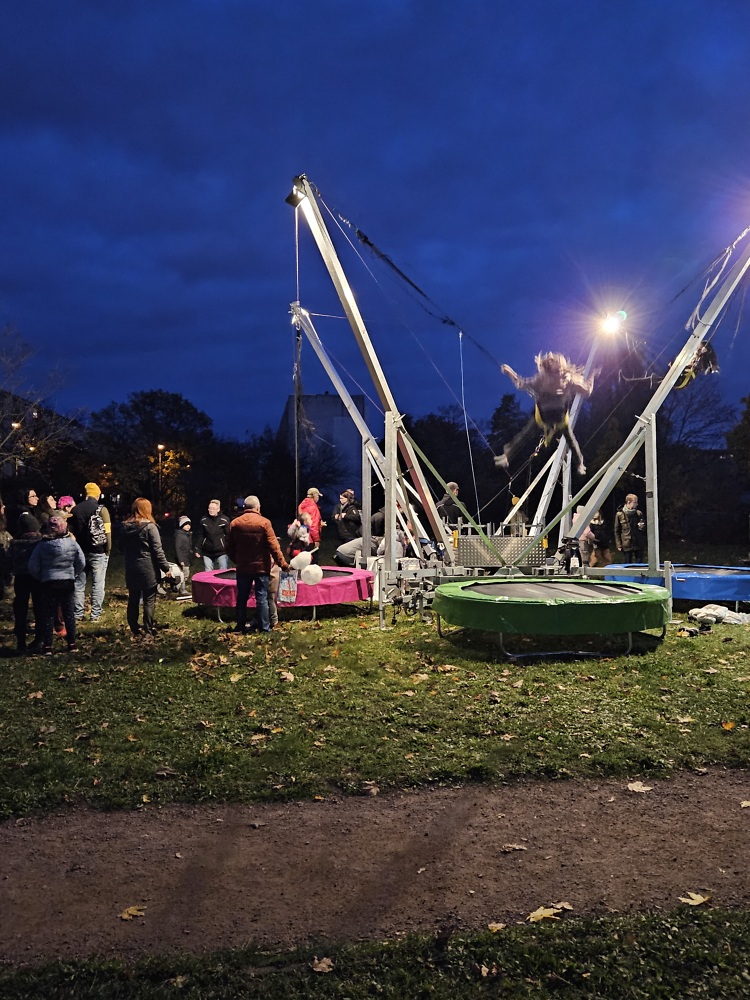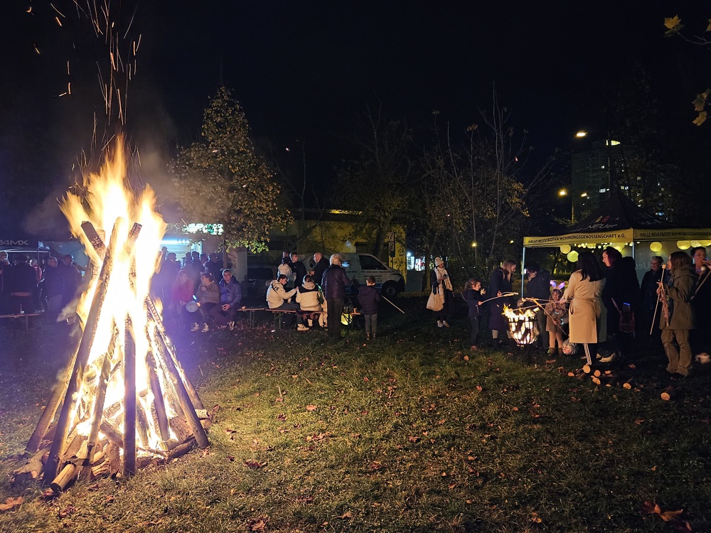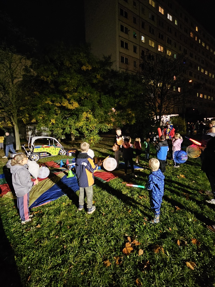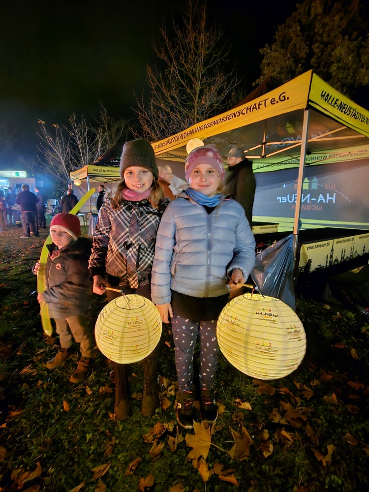 Pünktlich um 18 Uhr zogen wir mit Pauken & Trompeten und unseren Laternen durch Halle-Neustadt. Viele kleine und große Besucher freuten sich danach auf warme Getränke, frische Bratwürstchen und Zuckerwatte.