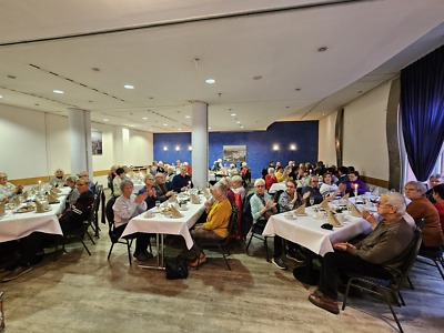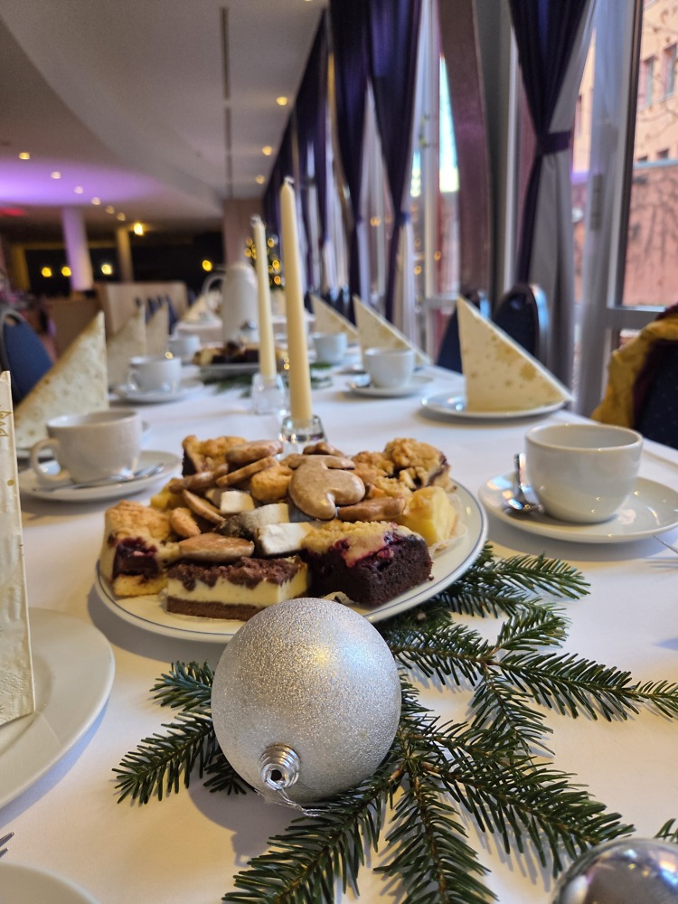 Unter diesem Motto beenden wir das Veranstaltungsjahr 2024 mit unserer Seniorenweihnachtsfeier. Mit ca. 130 Mietern und Mieterinnen verbrachten wir ein paar gemeinsame Stunden, neben Kaffee und verschiedenen Kuchenvaritationen gab es zum Anstoßen noch ein Gläschen Sekt. Danach hielt es viele nicht mehr auf den Sitzplätzen, denn zur Live-Musik vom DJ konnte das Tanzbein geschwungen werden.