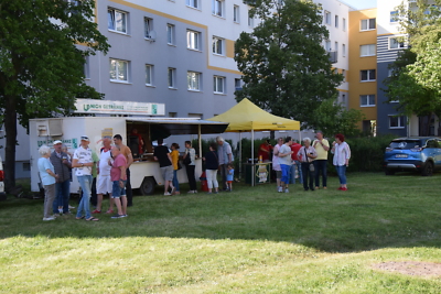 Unter diesem Motto haben wir am 03.09.2024 unser letztes Quartiersfest in diesem Jahr gefeiert. Bei heißen Außentemperaturen gab es Abkühlung durch leckeres Eis und kalte Softgetränke. Aber auch frische Bratwürstchen und Kaffee und Kuchen durften nicht fehlen. Wir hatten einen tollen Nachmittag mit vielen Gesprächen zwischen Mitarbeitern und Mietern und freuen uns auf das kommende Jahr!
