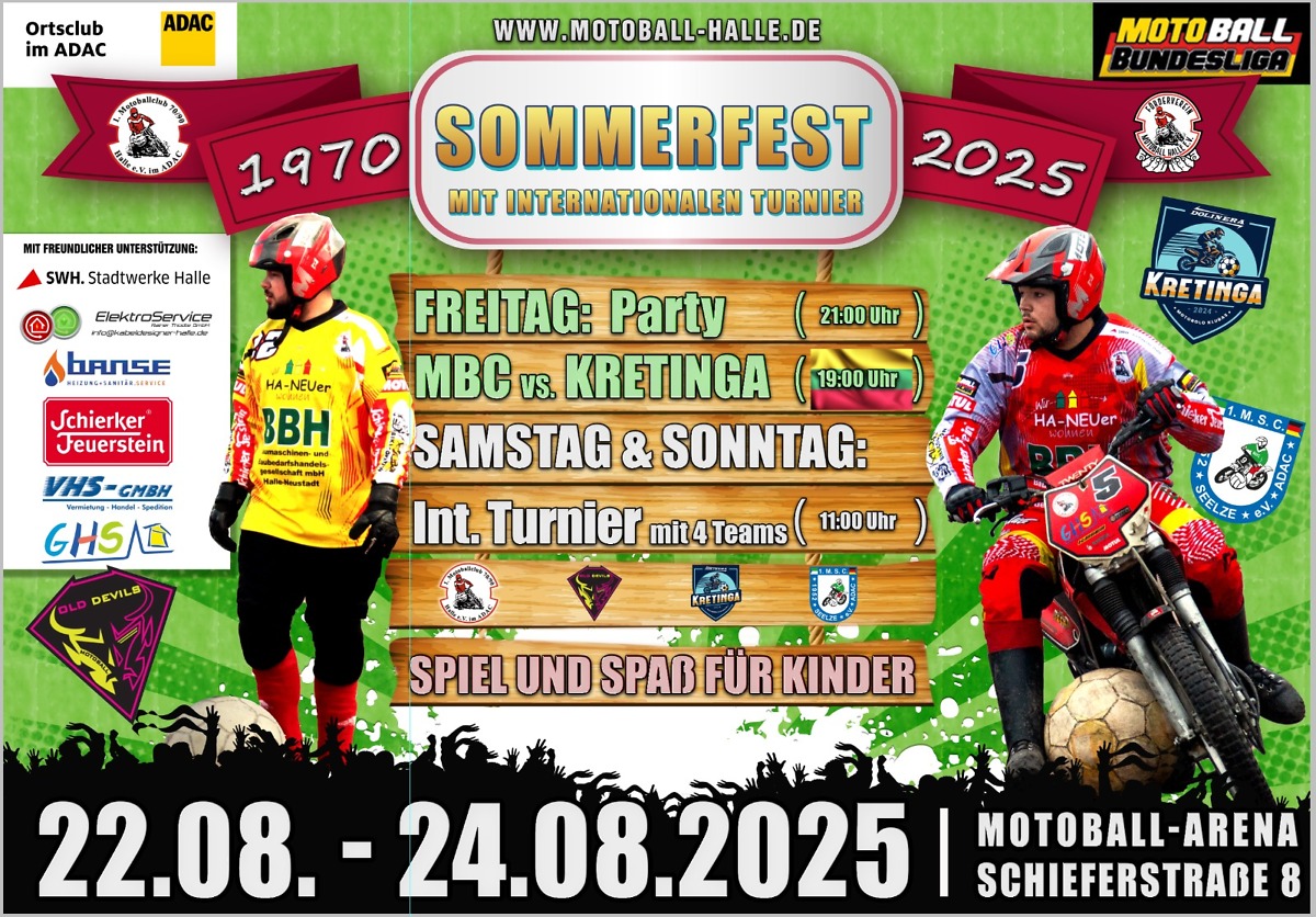 Groß & Klein sind eingeladen zum Sommerfest des 1. MBC Motoball 70/90 Halle.